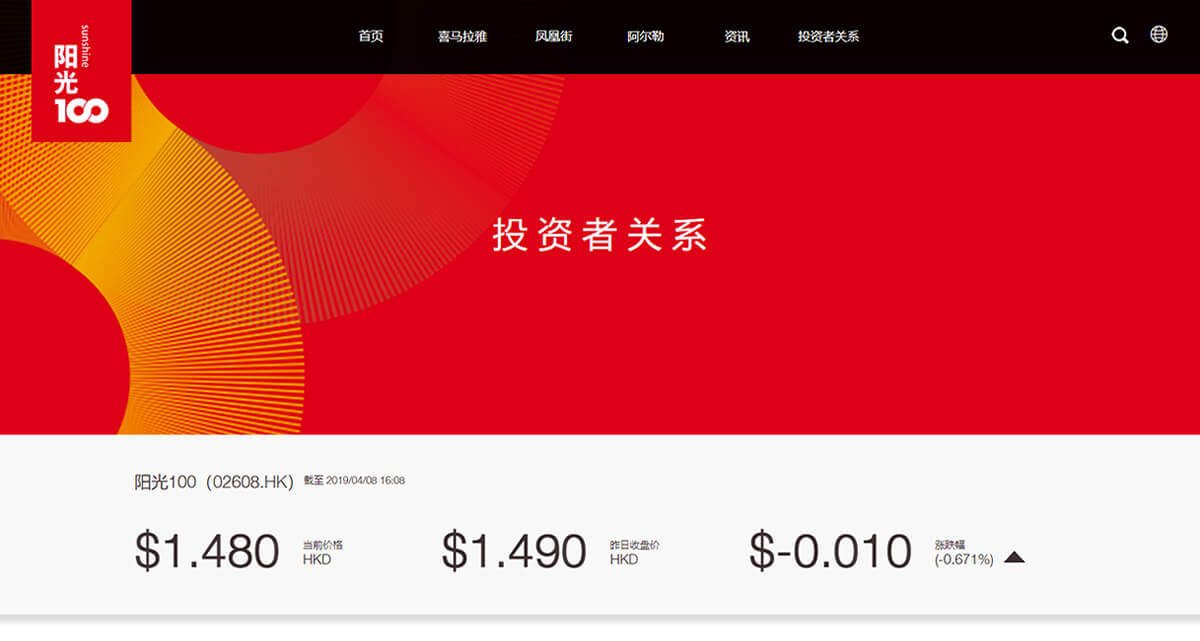 陽光100中國控股有限公司(香港聯交所股份代號:2608)是專注于城市新中產目標市場,并在這一細分市場保持領先的發展商。