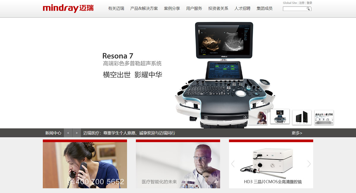 邁瑞公司是中國領先的高科技醫療設備研發制造廠商,同時也是全球醫療設備的創新領導者之一。 自1991年成立以來,邁瑞公司始終致力于面向臨床醫療設備的研發和制造,產品涵蓋生命信息與支持、臨床檢驗及試劑、數字超聲、放射影像四大領域,將性能與價格完美平衡的醫療電子產品帶到世界每一角落。時至今日,邁瑞公司在全球范圍內的銷售已擴展至190多個國家和地區。