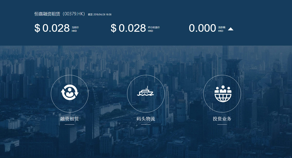 中國恒嘉融資租賃集團有限公司是一家于香港主板上市公司(上市代碼:379.HK),公司已由傳統的制造、貿易業務轉型為金融服務類的集團公司。目前,公司業務包括融資租賃、碼頭物流、證券投資等,同時作為香港地區持牌放貸人,經營借貸業務。