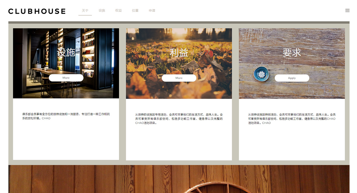 CHAO Clubhouse為懷抱重塑品質(zhì)生活熱誠的社群而建,是探索、創(chuàng)造、分享的專屬社區(qū)。俱樂部采用會員邀請制,會員通過訂閱,參與精心設(shè)計的會員尊享活動計劃,結(jié)識志趣相投的高知人群,發(fā)現(xiàn)生活之美。